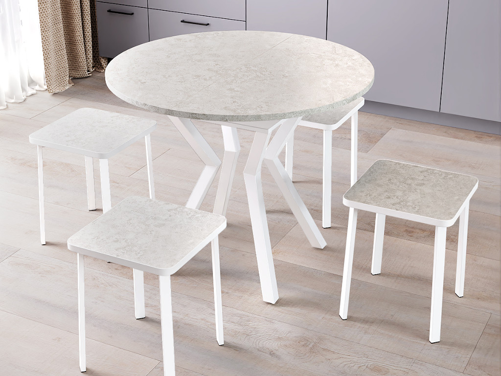 - Стол Лофт-круг раздвижной Пластик 0414-белая опора изогнутая ромб