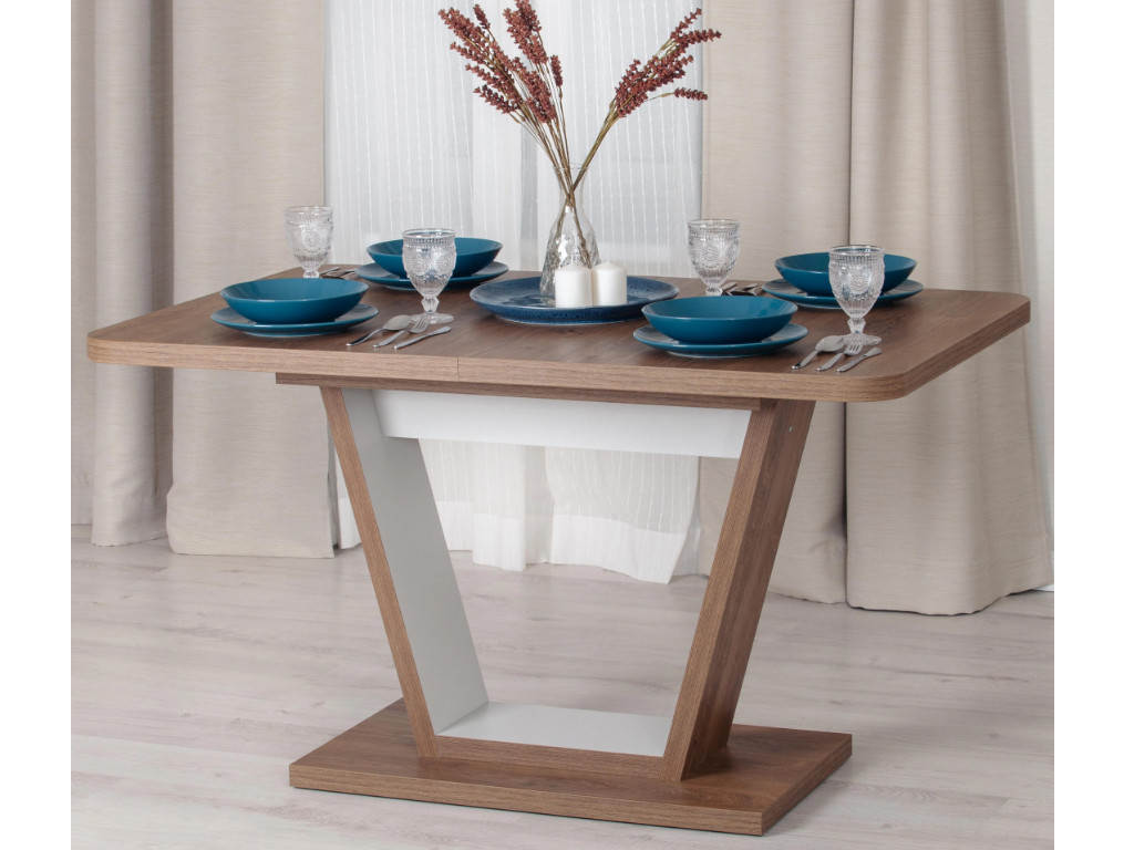 Размеры стола дают возможность с комфортом разместить от четырех до восьми человек. Вставка стола убирается горизонтально в подстолье. Края оклеены прочной пластиковой кромкой толщиной 2 мм. ЛДСП толщиной 18+18 мм. Механизм раздвижения - синхронного типа со стопором.