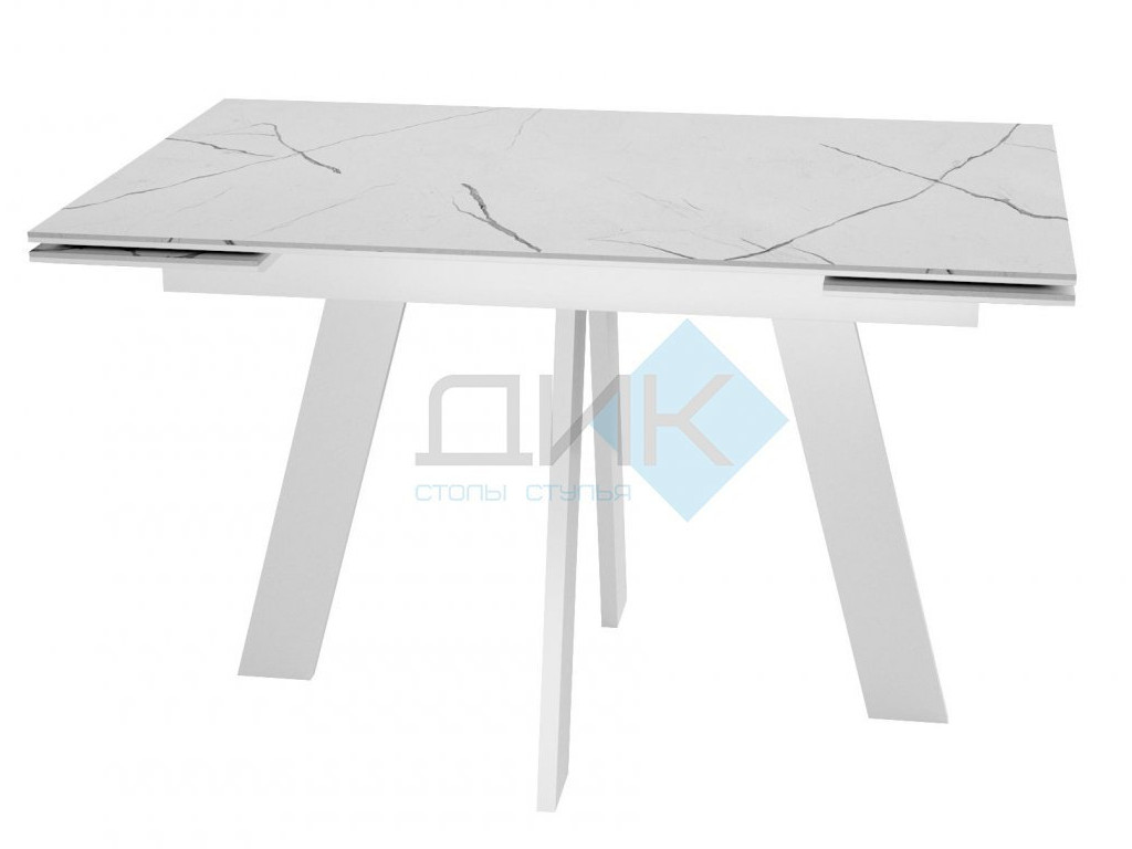 - Стол SKM 120 керамика белый мрамор/подстолье белое