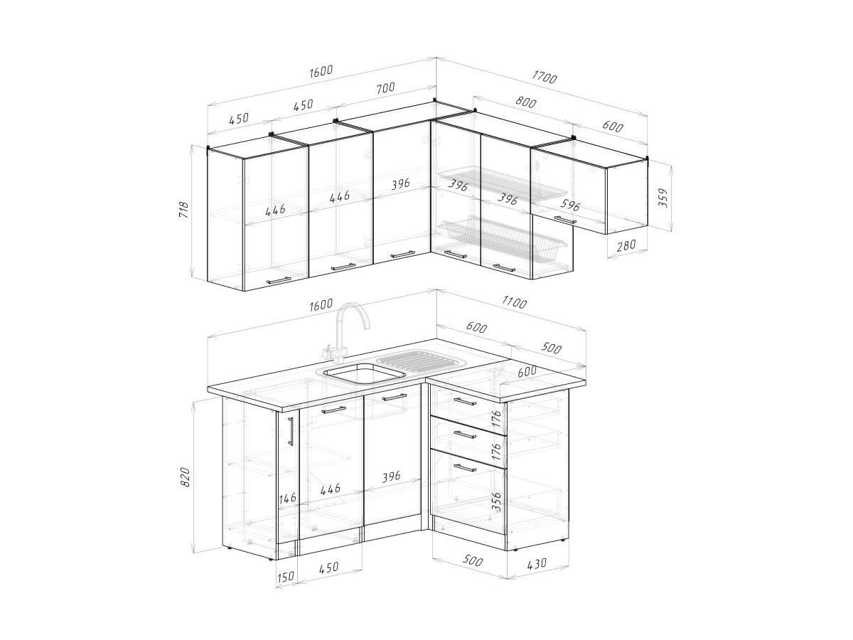 Кухонный гарнитур Анхель мега прайм 1600х1700 мм