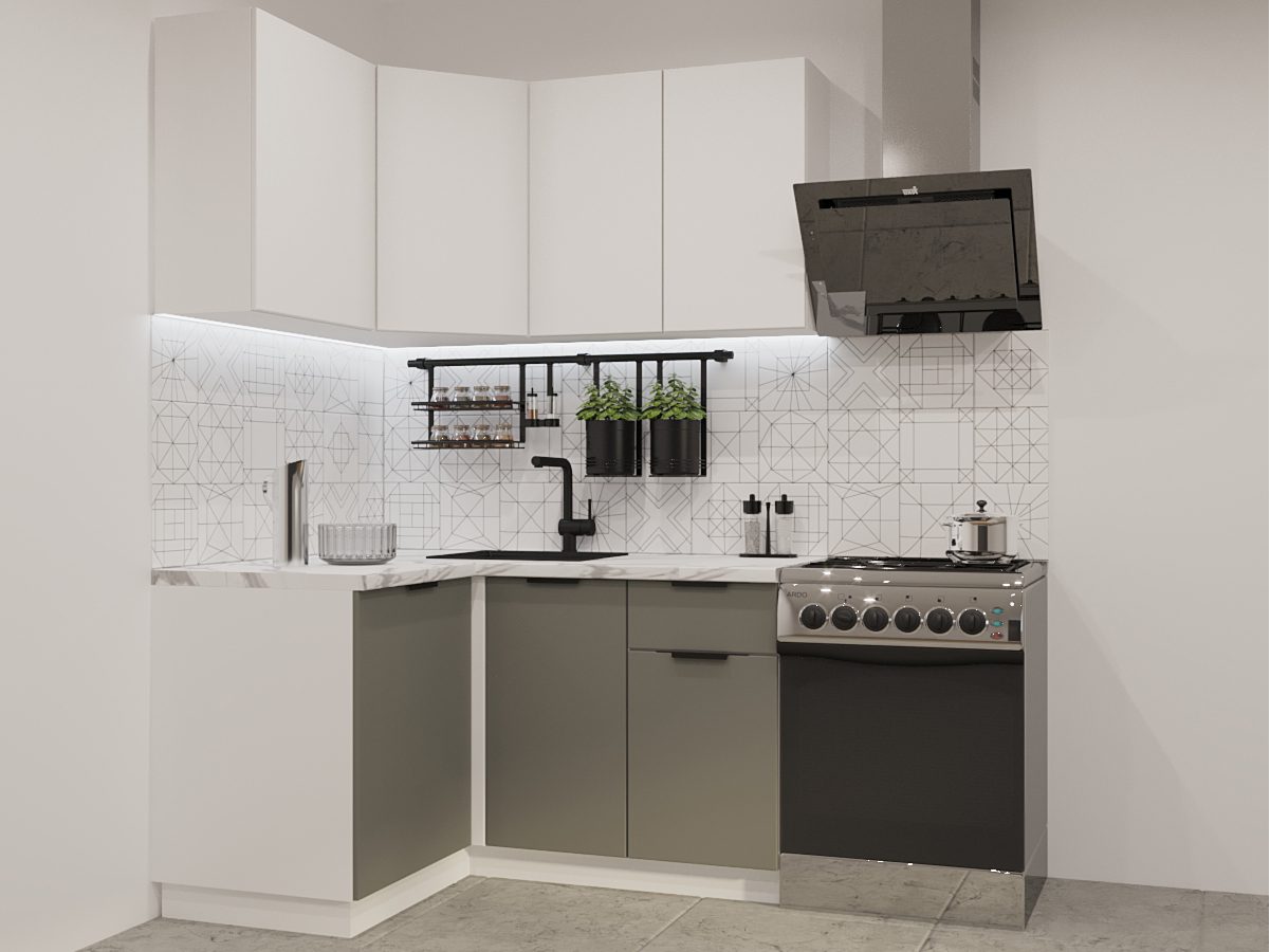 - Кухонный гарнитур арт 1 Фаска Тальк Обсидиан 1200х1400 мм