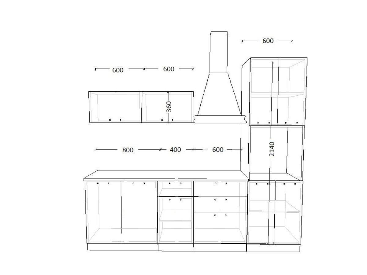 - высота верхних шкафов 720 мм