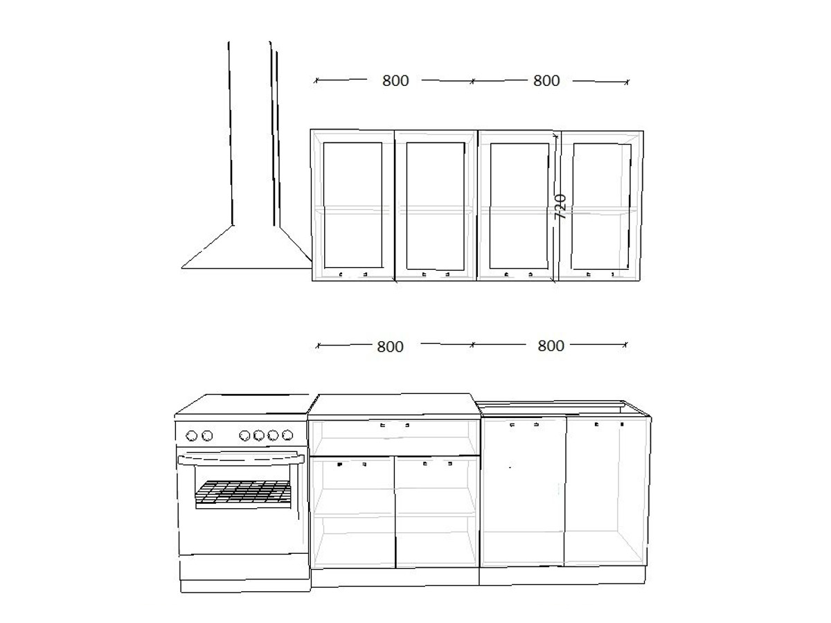 - высота верхних шкафов 720 мм