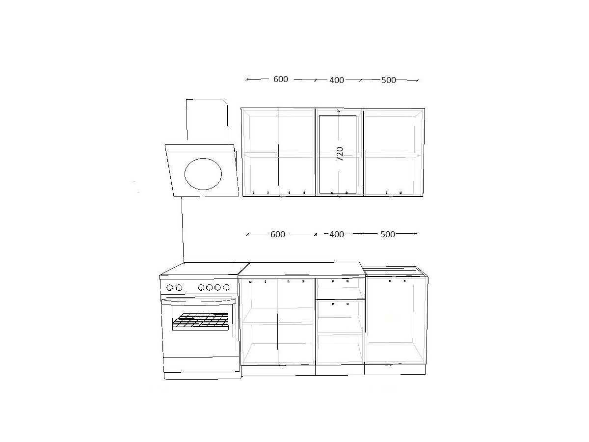 Кухонная мойка, стеновая панель, посудосушитель, планки для столешницы в комплект не входят.