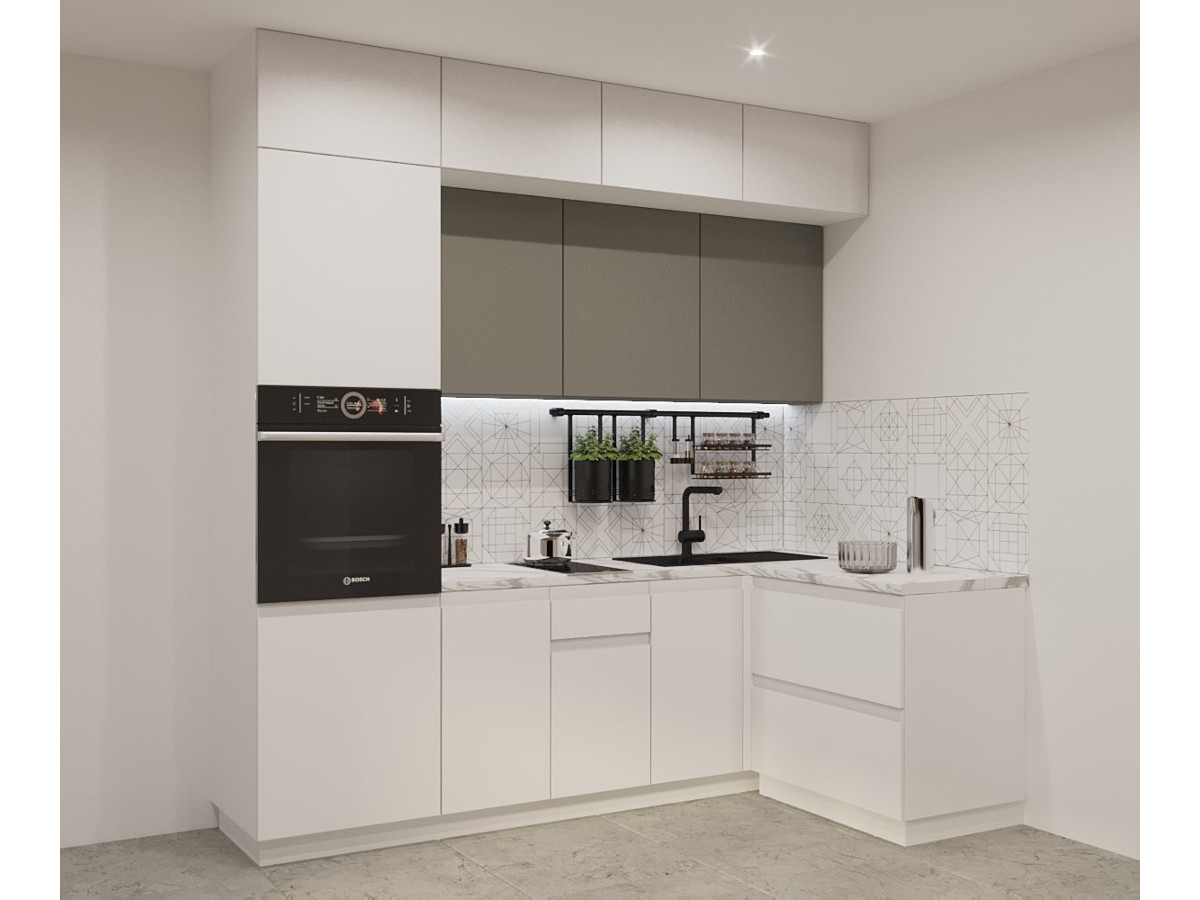 - Кухонный гарнитур арт 21 Лайн Обсидиан Тальк 2400х1400 мм