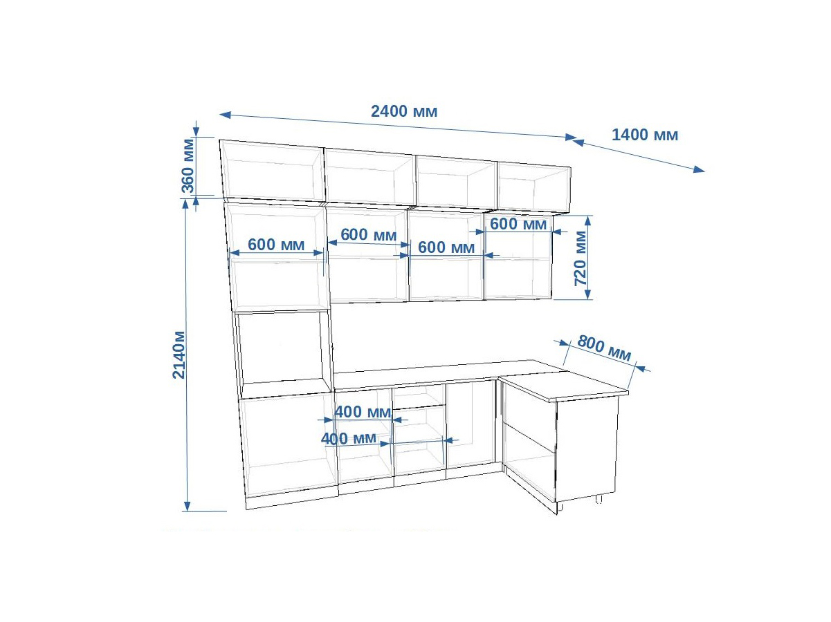 - высота верхних шкафов 720 мм