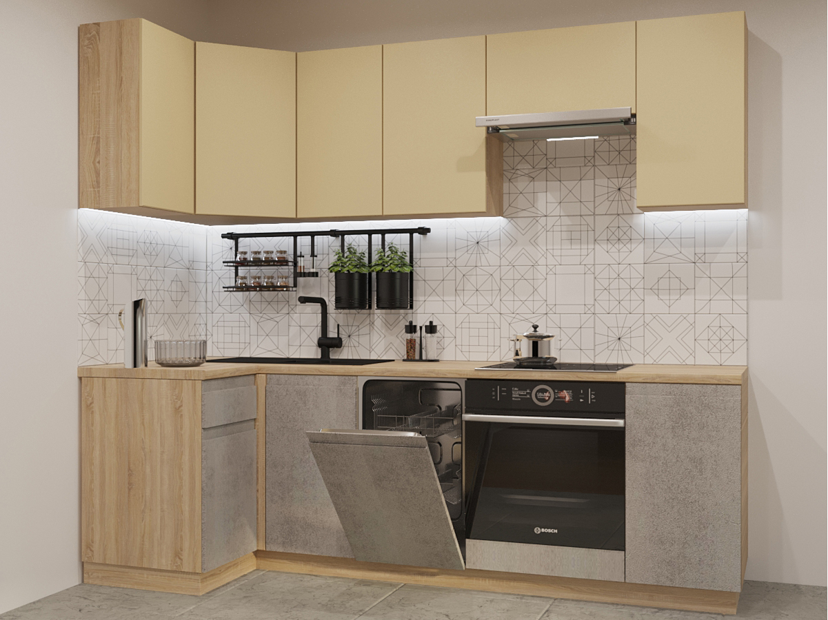 - Кухонный гарнитур арт 27 Лайн Бетон светлый Стамбул 1000х2450 мм