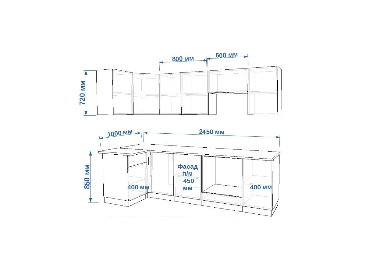 Кухонная мойка, стеновая панель, посудосушитель, планки для столешницы в комплект не входят.