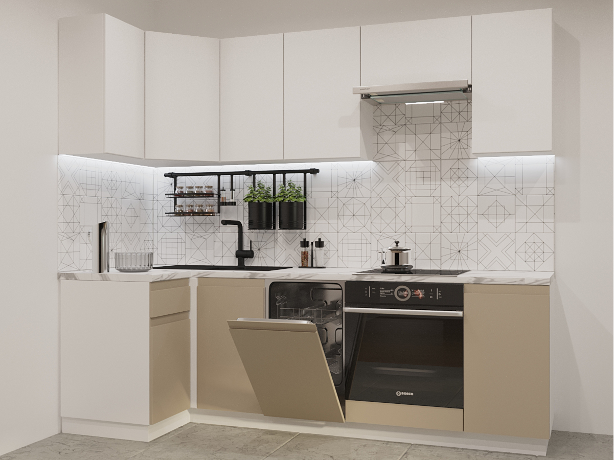 - Кухонный гарнитур арт 28 Лайн Тальк Пикрит 1000х2450 мм