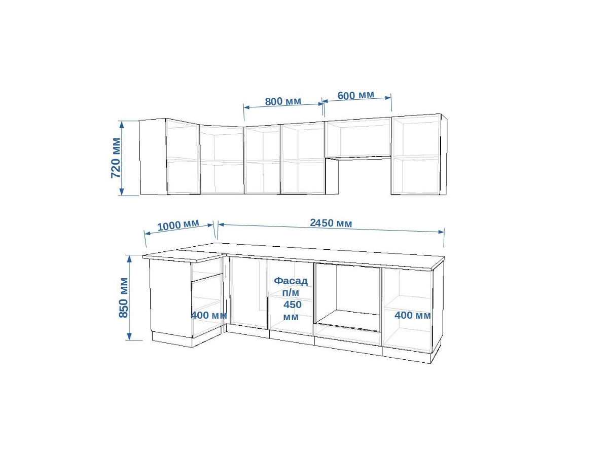 Кухонный гарнитур арт 28 Лайн Тальк Пикрит 1000х2450 мм