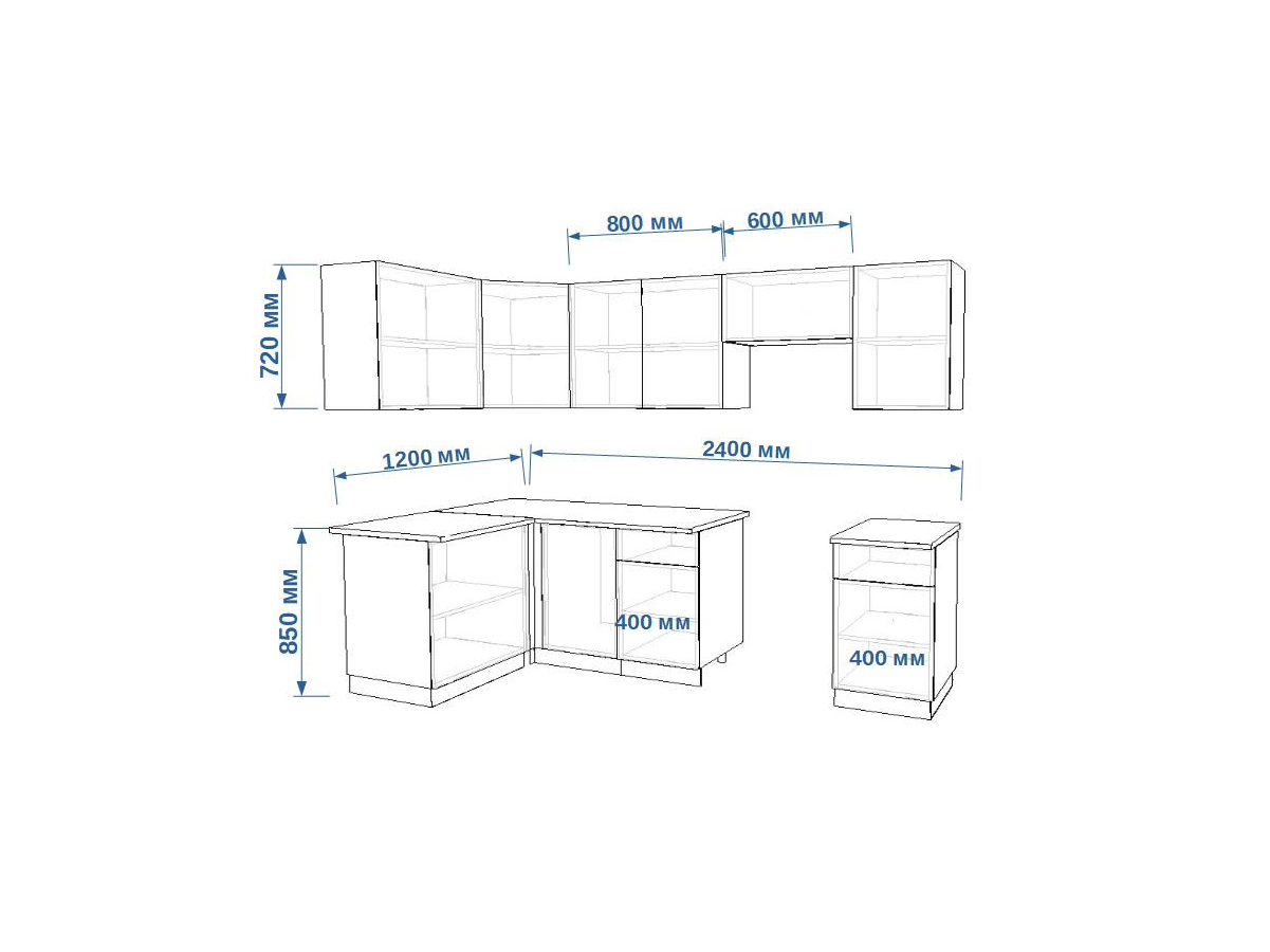 - Кухонный гарнитур арт 33 Лайн Бетон темный Пикрит 1200х2400 мм