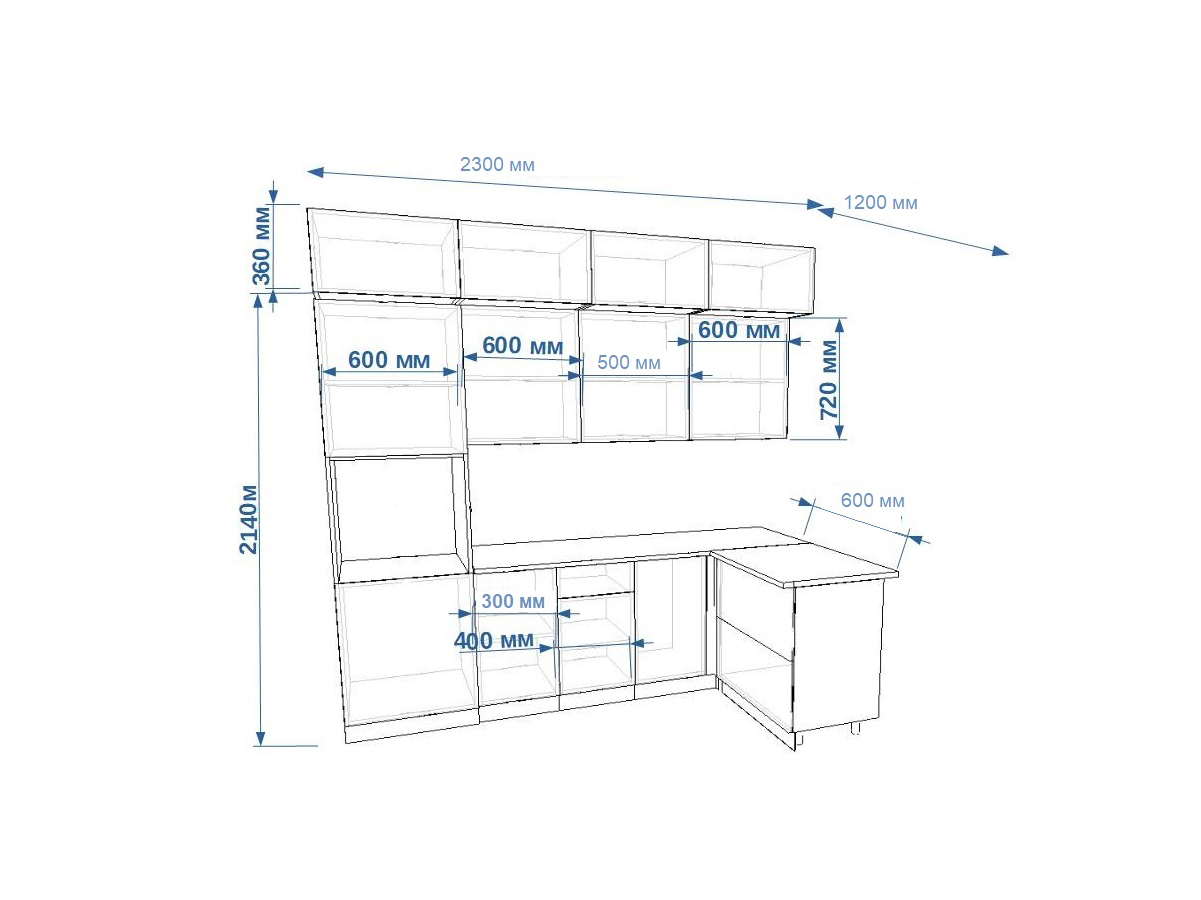 - Кухонный гарнитур арт 7 Фаска Тальк Дуб сонома 2300х1200 мм