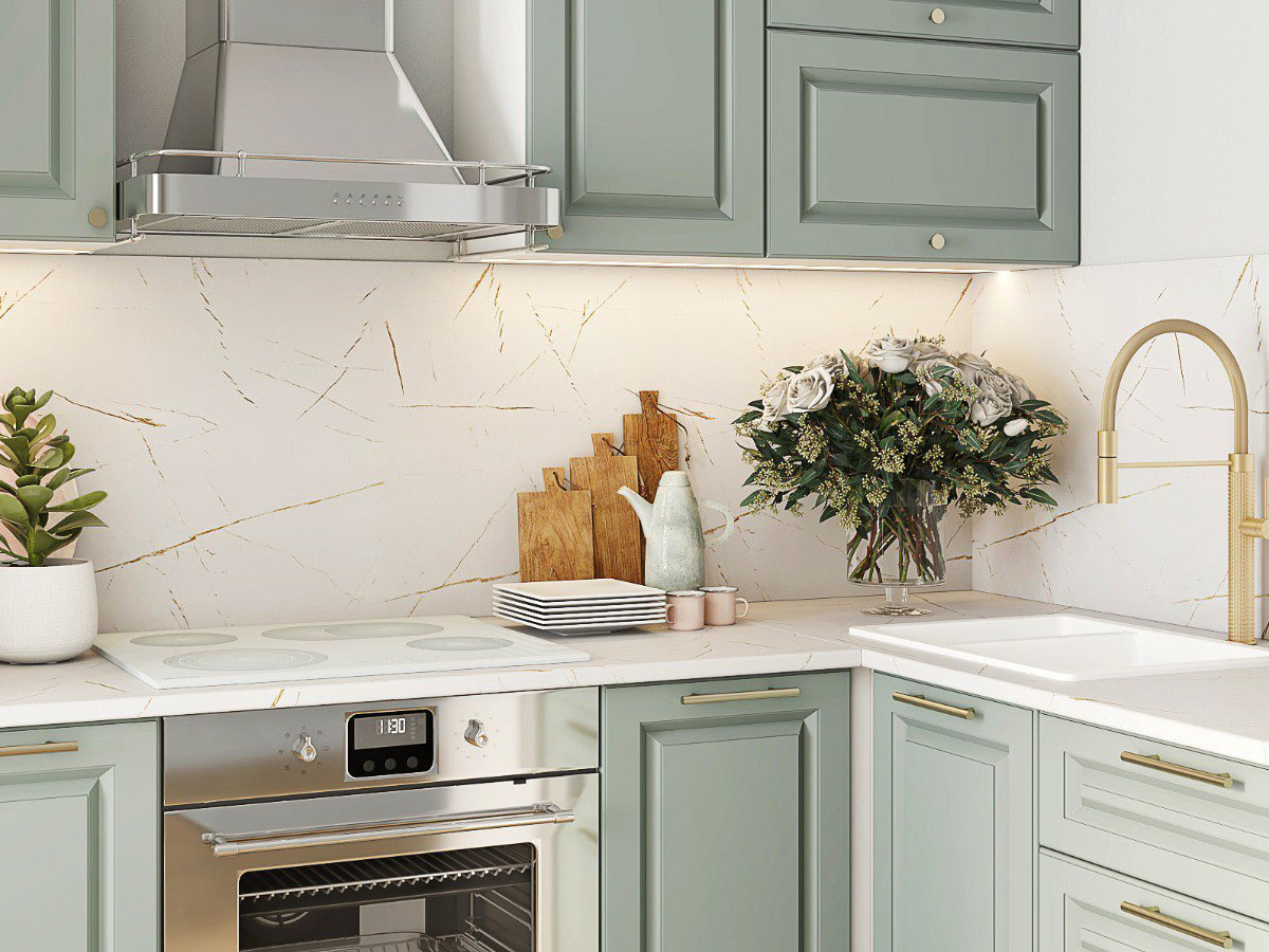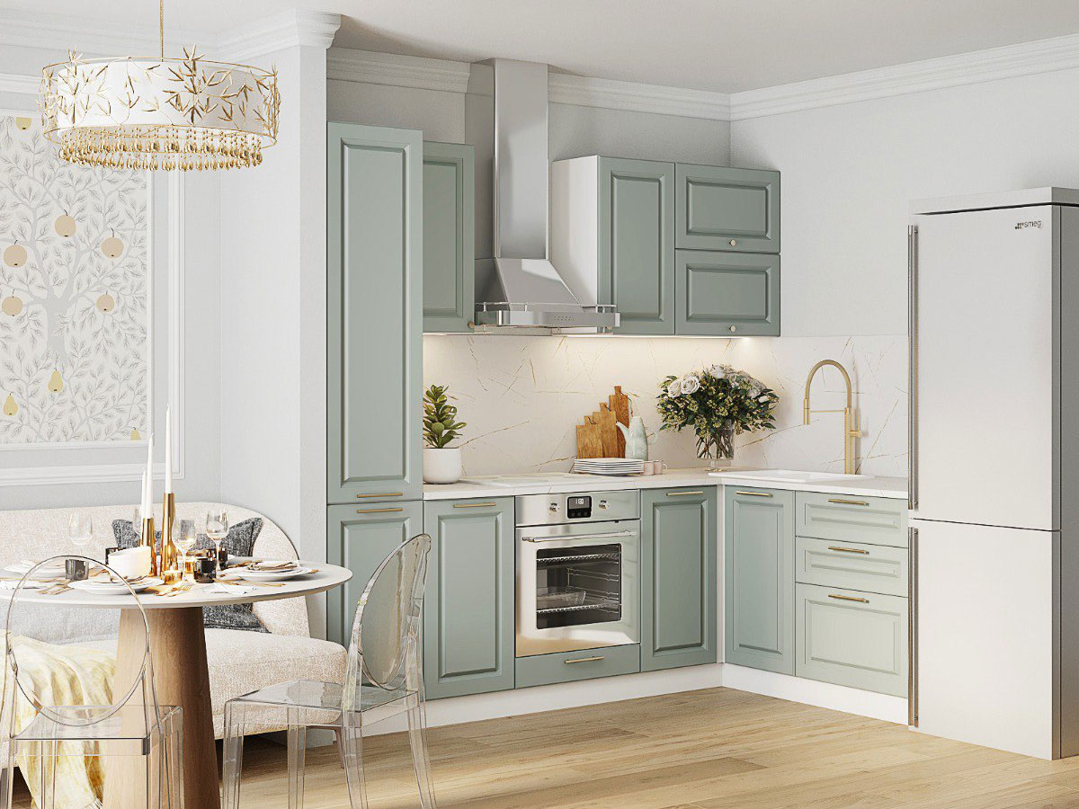 - Кухонный гарнитур Грин Грей Софт 2400х1600 мм