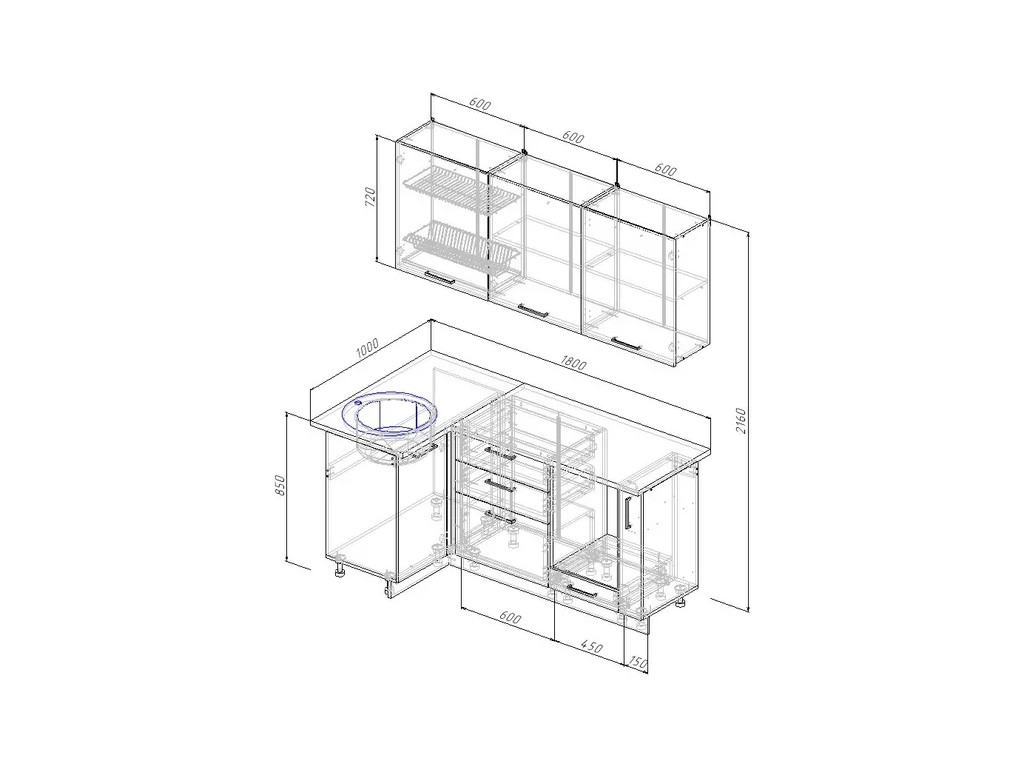 - Столешница: ЛДСП 26мм со скругленным краем (в пластике)