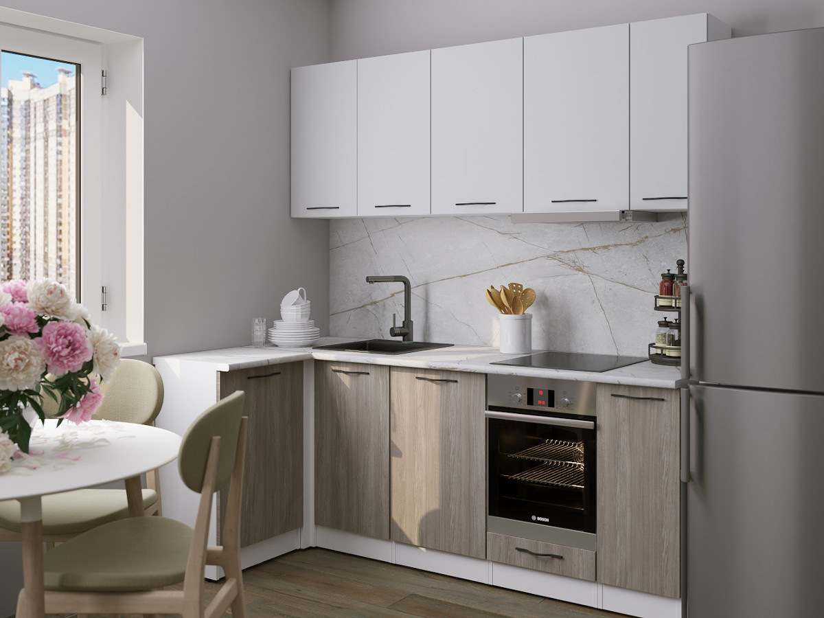 Мойка, смеситель, стеновая панель и посудосушитель в комплект гарнитура не входят.