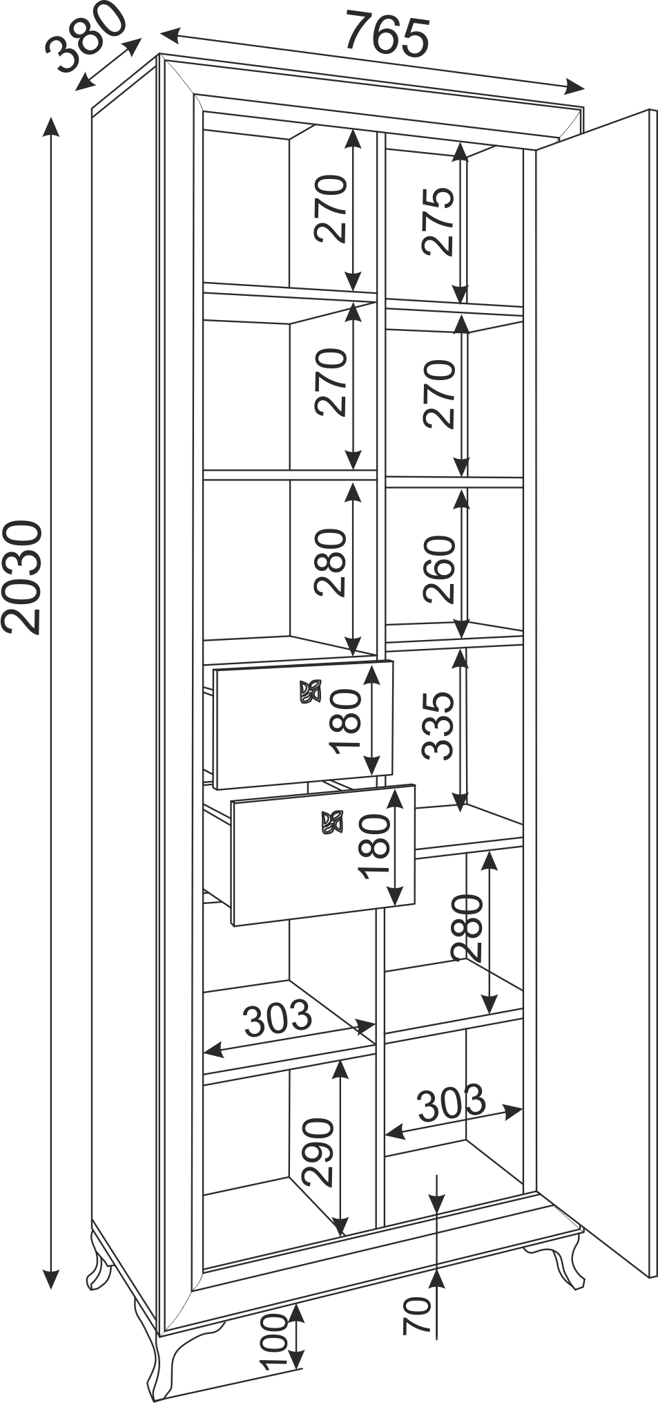 Размеры (Ш*Г*В): 765*380*2030 мм.