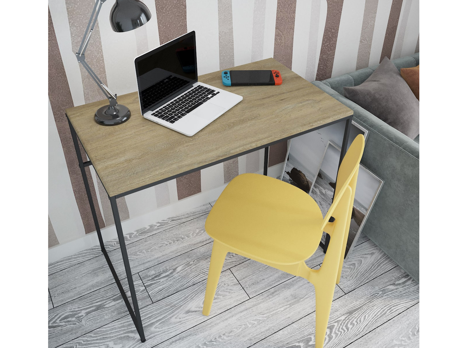 Материал: Металлический каркас выполнен из прочной профильной трубы 15*15 мм, столешница выполнена из экологичного материала МДФ, облицованного влагостойким декоративным покрытием.