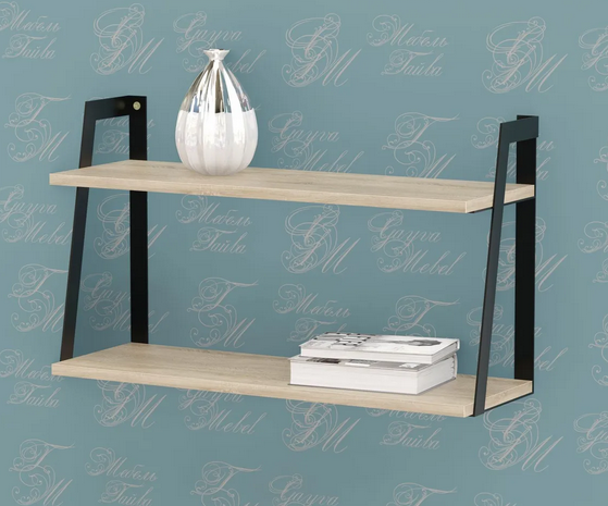 Полка металлическая ЛОФТ-2 Дуб сонома-черный матовый