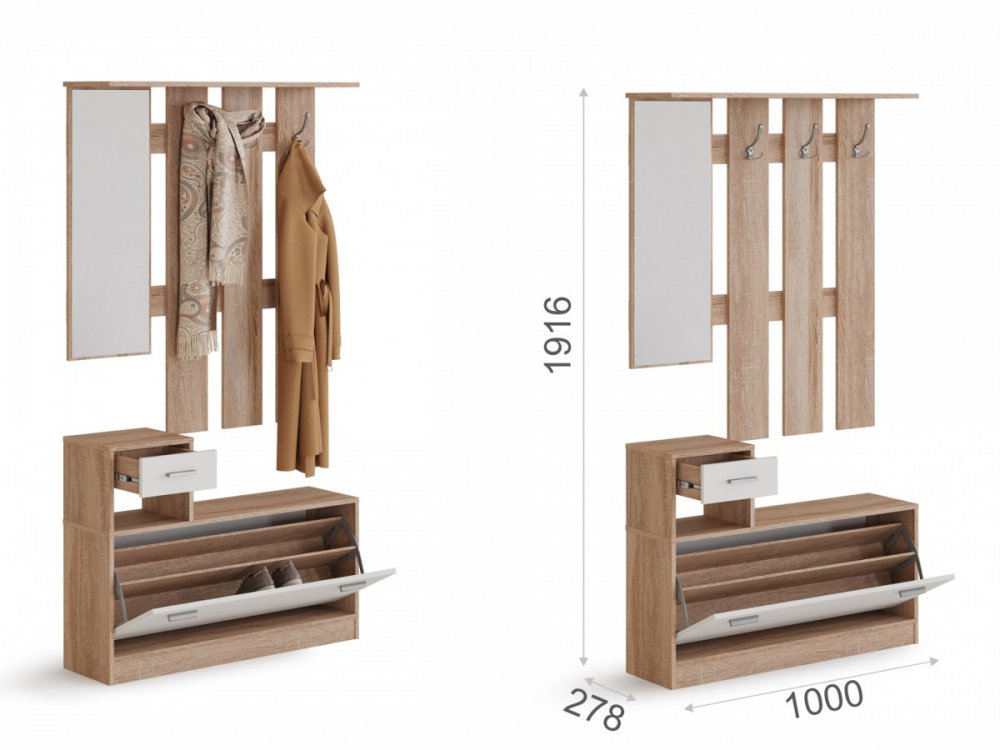 Размер прихожей ШхВхГ: 1000х1916х278 мм (36,3 кг; 0,078 м3) - 11700 руб