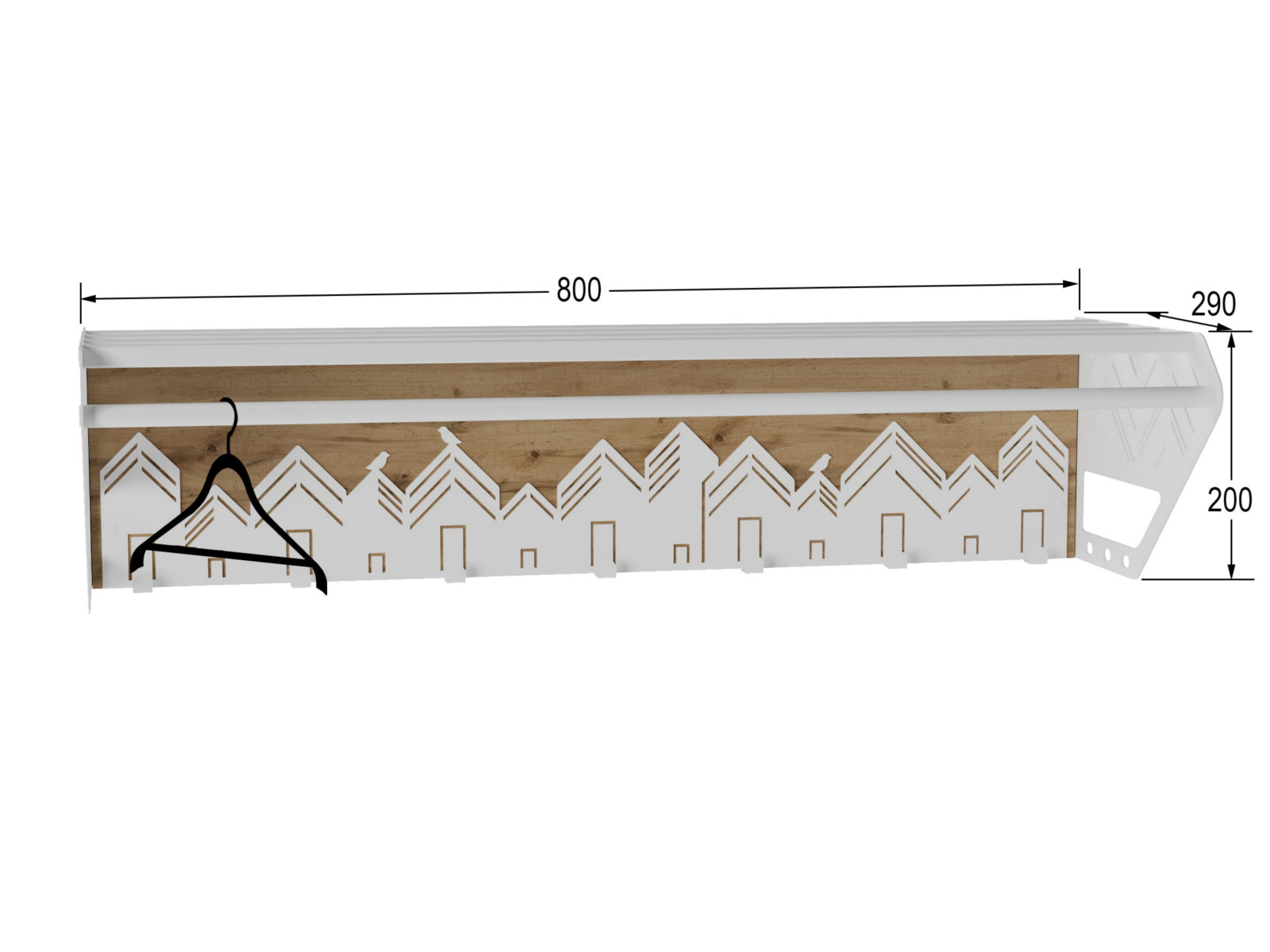 Вешалка выполнена из экологичного и прочного материала МДФ в сочетании с листовым металлом 1,5 мм.