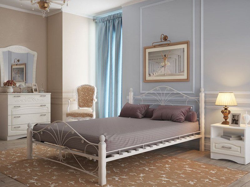 Оригинальная Кровать выполнена с кованым узором на спинке и ножками из массива березы