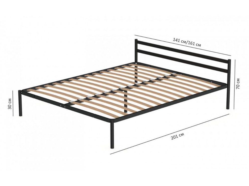 Каркас кровати изготовлен из металлического профиля сечением 40*20 мм. Несущие элементыв в основаниях - березовые латофлексы 53*8 мм, установленные с шагом 79 мм. Основание укомплектовано врезными латодержателями для боковин и накладными - для центральной перекладины, Распределенная статическая нагрузка на одно спальное место составляет 120 кг. Для фиксации матраца на основании кровати предусмотрены матрасодержатели. Их можно устанавливать как в изножье кровати, так и сбоку.