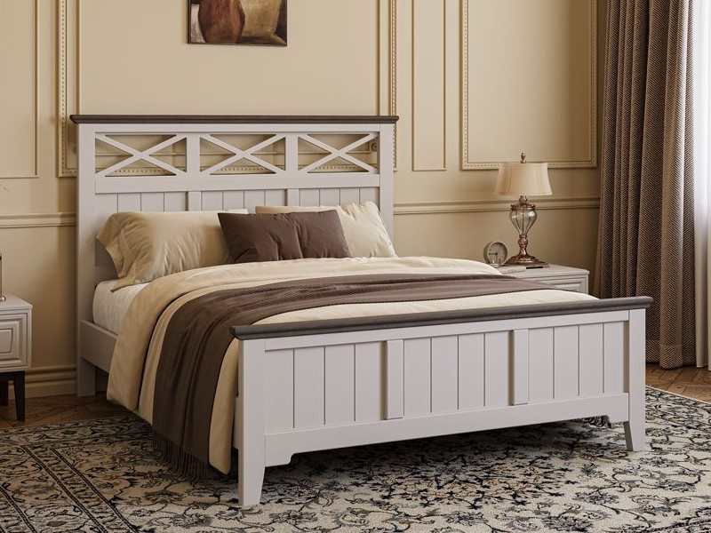 - Кровать Грация-5 1400 Льняной с карнизом Дуб коньяк