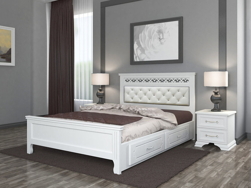 - Кровать Грация с 2-мя ящиками 1600 Белый античный