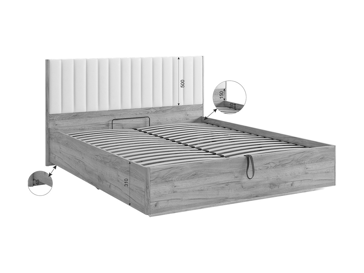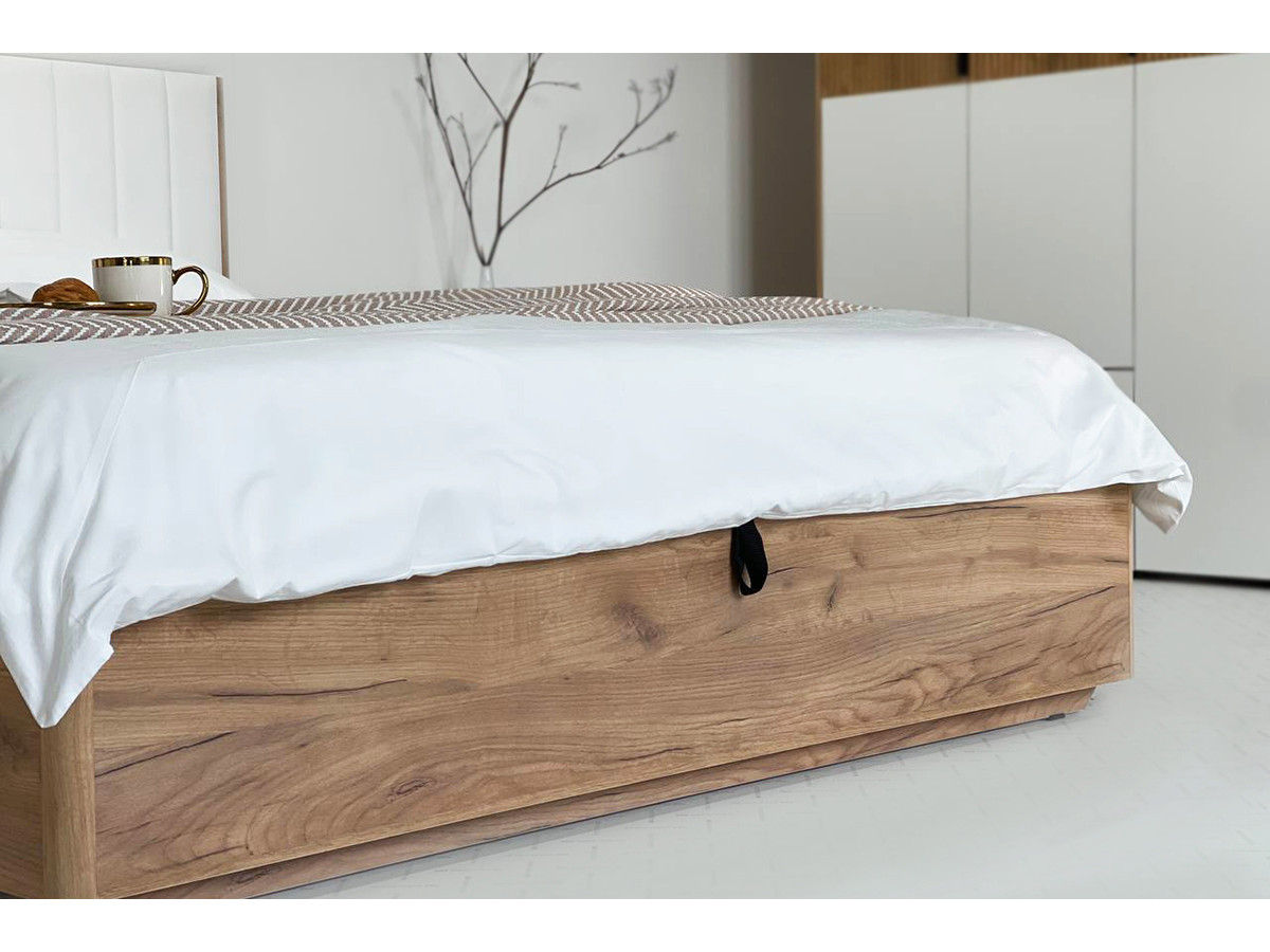 - Кровать с подъемным механизмом Адам дуб крафт золотой/белоснежный