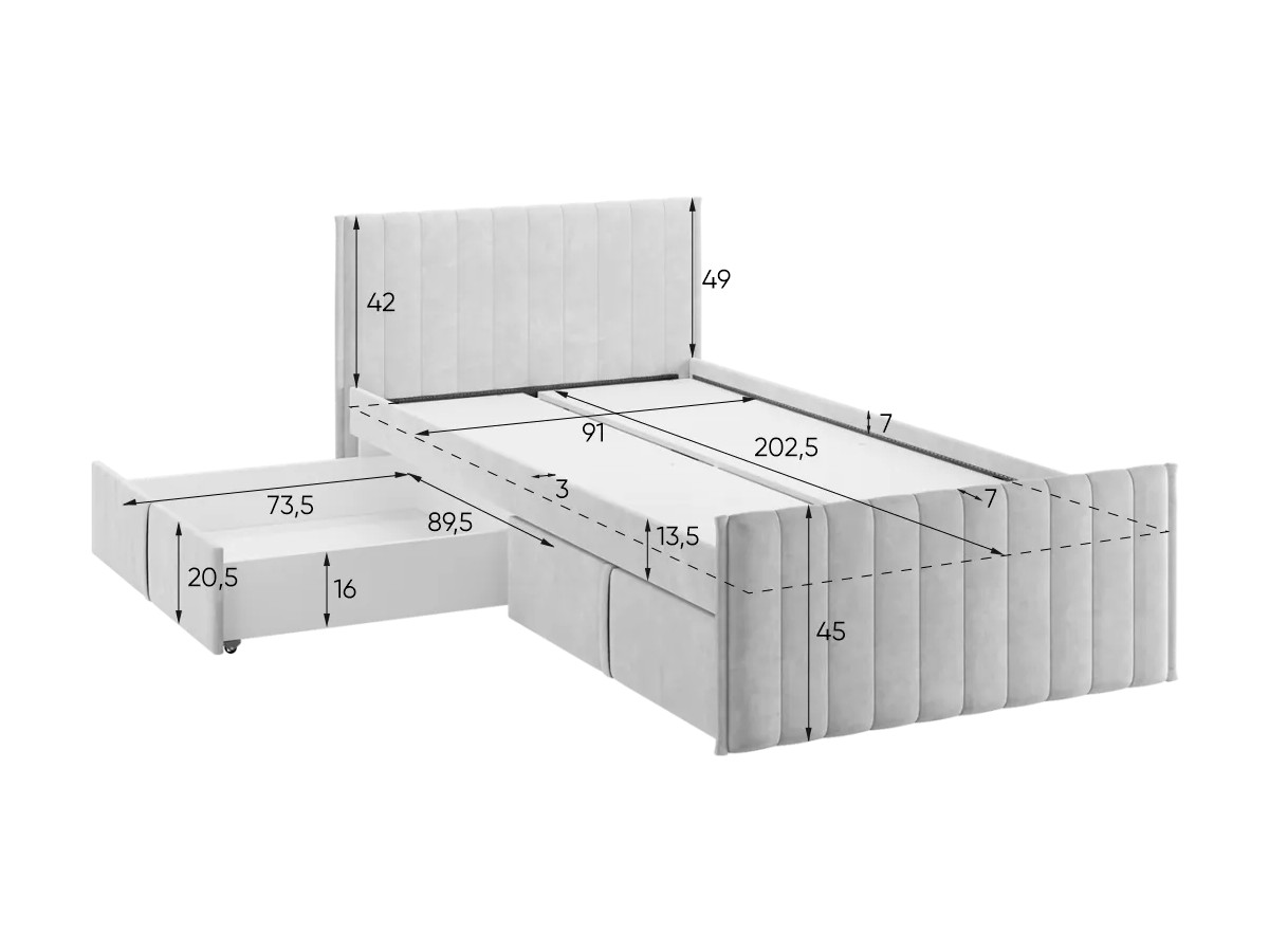 - Кровать с ящиками Твикс цвет велюра латте