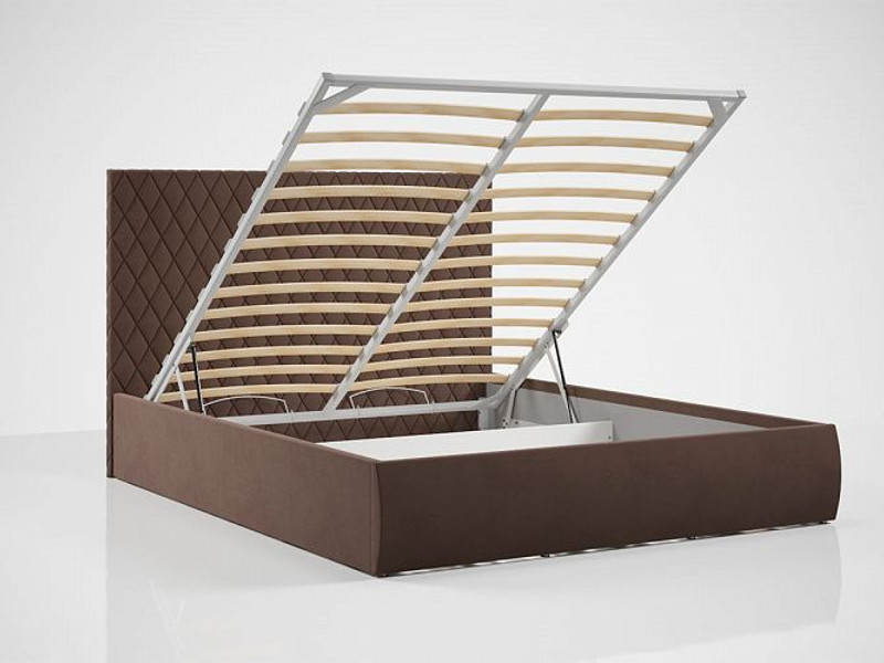 - Кровать Стелла с ПМ 1400х2000 мм микровелюр шоколад