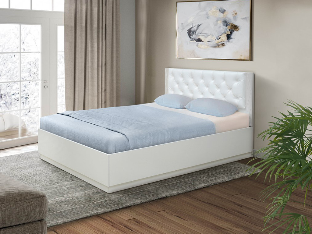 - Кровать Венеция 12.2 1400 с ортопедическим основанием кожзам белый