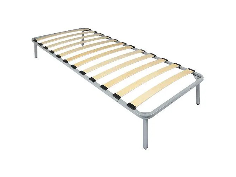 Изготовлено из металлической трубы квадратного сечения с полимерно-порошковым покрытием, гнуто-клееных березовых ламелей и пластиковых латодержателей.