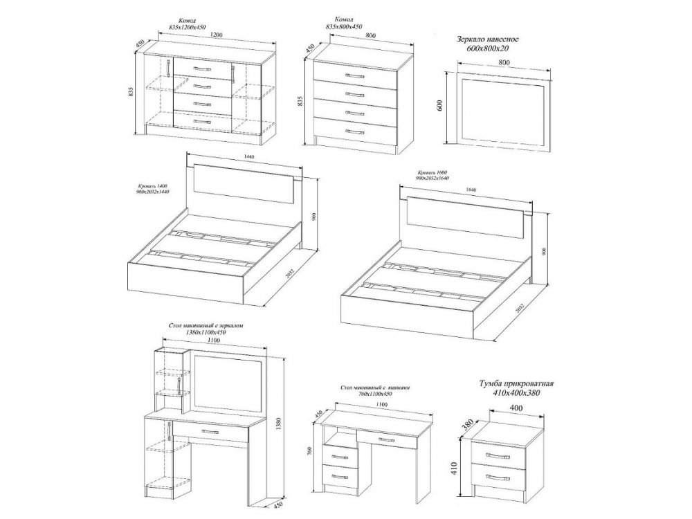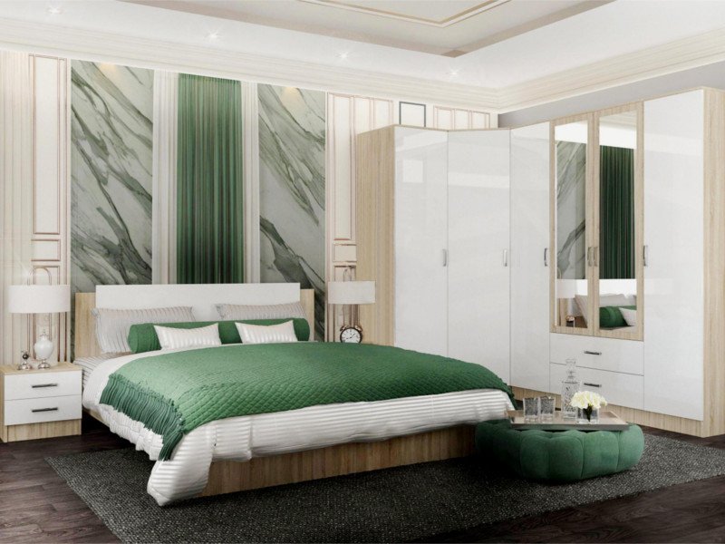 Цена указана за комплект на главном фото: Шкаф четырехстворчатый, Шкаф угловой, Пенал, Кровать 1400 мм, Тумба