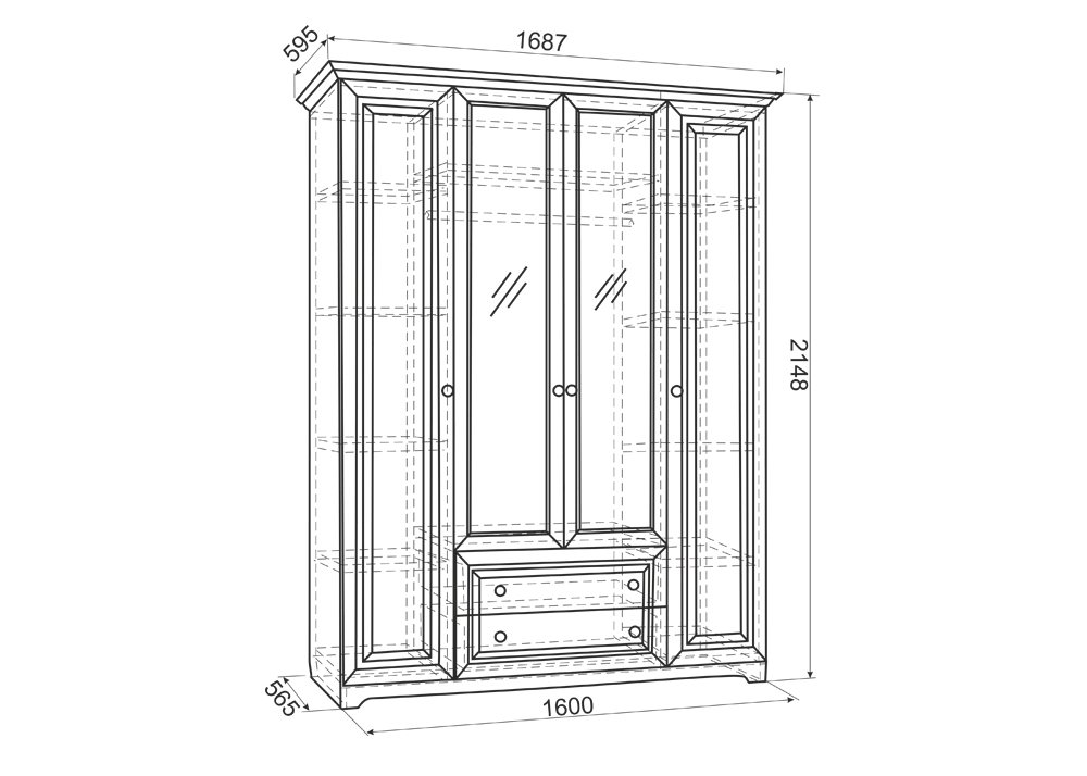 - Шкаф 4-створчатый ш=1687 мм, г=595 мм, в=2148 мм - 72550 руб