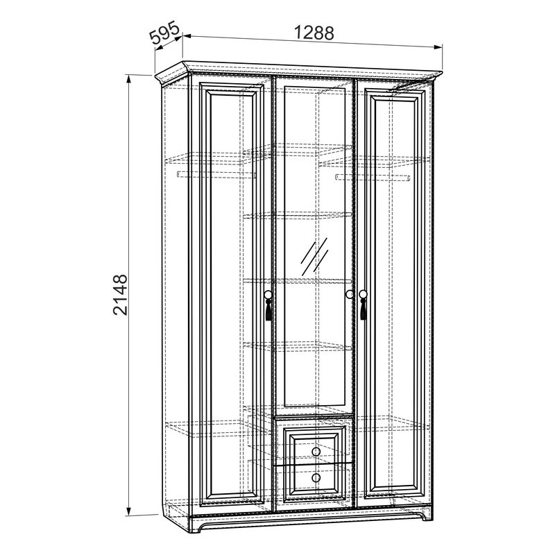 - Шкаф 3-створчатый ш=1284 мм, г=593 мм, в=2148 мм - 57110 руб
