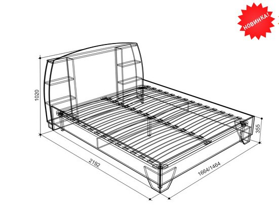- Кровать 1600 ш=1664 мм, г=2192 мм, в=1020 мм - 18380 руб