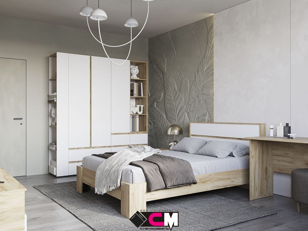 Цена за комплект на фото: КР 02 Кровать 1.4х2.0, ПС 01 Письменный стол, ПН 02 Пенал, ПН 03 Пенал, ШК 01 Шкаф, СТЛ 01 Стеллаж