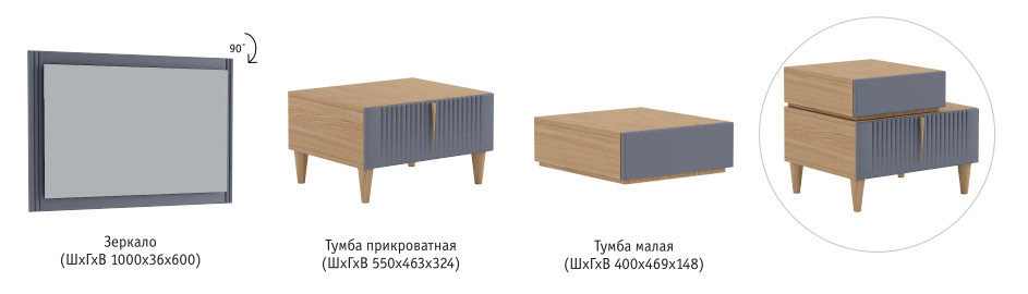 Цена за комплект: Кровать 1600 с банкеткой, Тумба прикроватная, Тумба малая, Комод 2 двери, Зеркало, Стол туалетный 1698