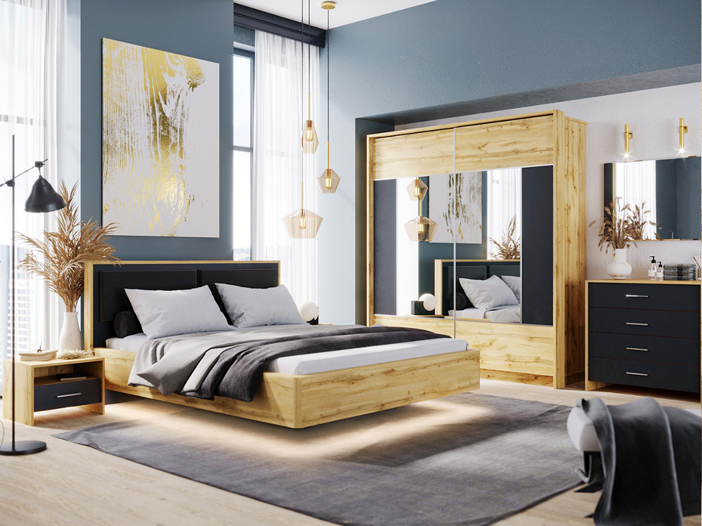 Цена за комплект: зеркало, комод, парящая кровать 1400, тумба прикроватная, Шкаф-купе 1600