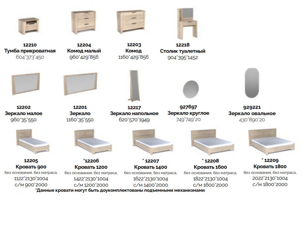 Цена за комплект: Зеркало, Комод, Тумба прикроватная (2 шт), Шкаф 3-х дверный широкий зеркальный, Кровать 1400, Ортопедическое основание 1400*2000
