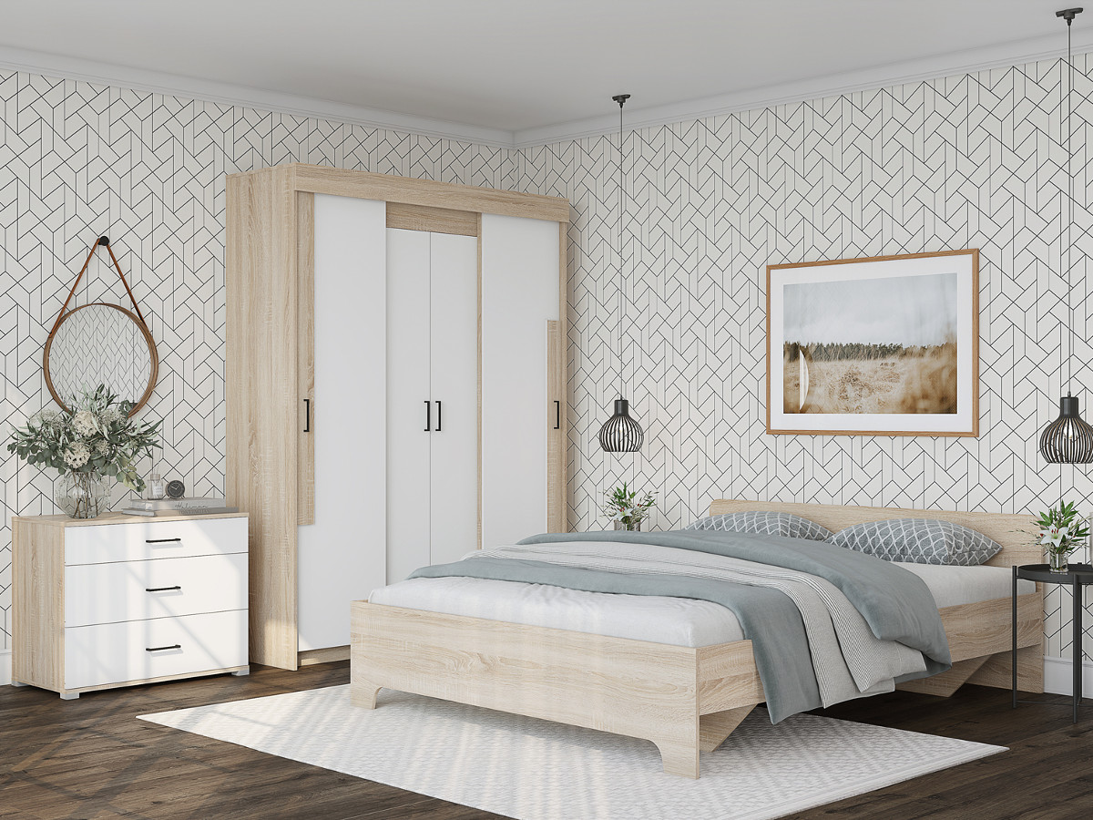Цена за комплект: Шкаф купе, Кровать + Основание, Комод