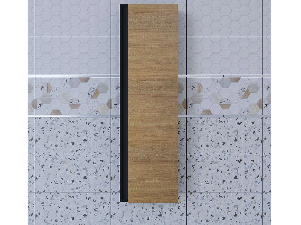 - Шкаф-пенал для ванной Uperwood Barsa подвесной черный/дуб сонома