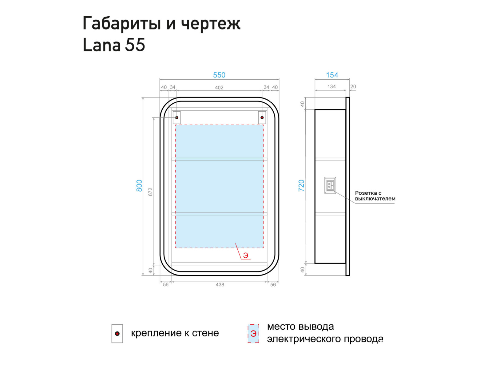 - Шкаф зеркальный Lana 55 белый холодный