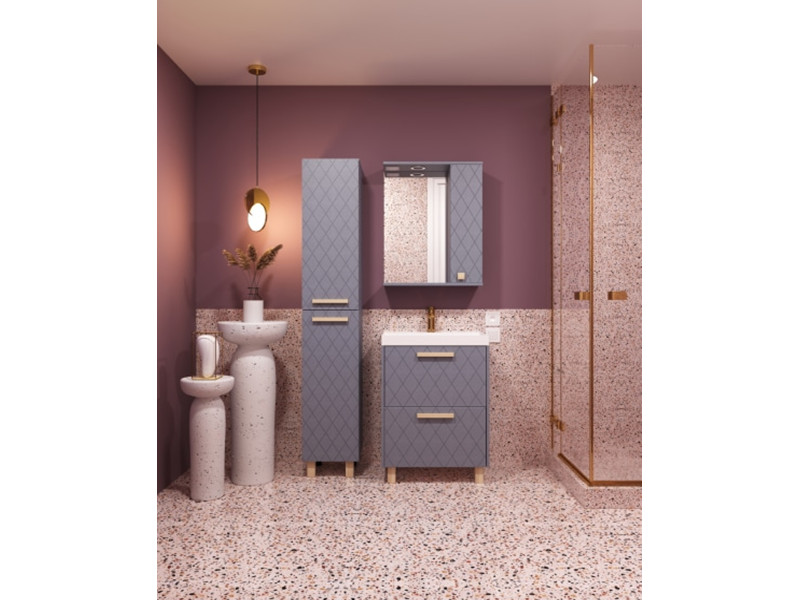 Зеркало "Кристалл" 70 со светильником правый, ручка кнопка дуб