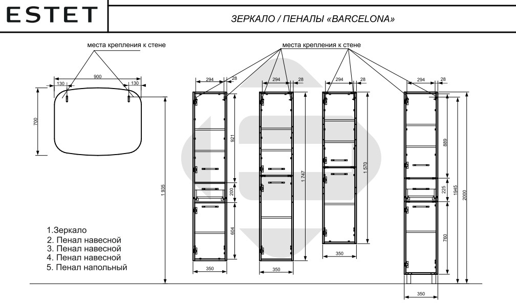 - Пенал подвесной Barcelona h=1747мм правосторонний 1 ящик