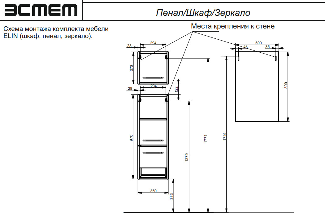 - Пенал подвесной Elin правосторонний