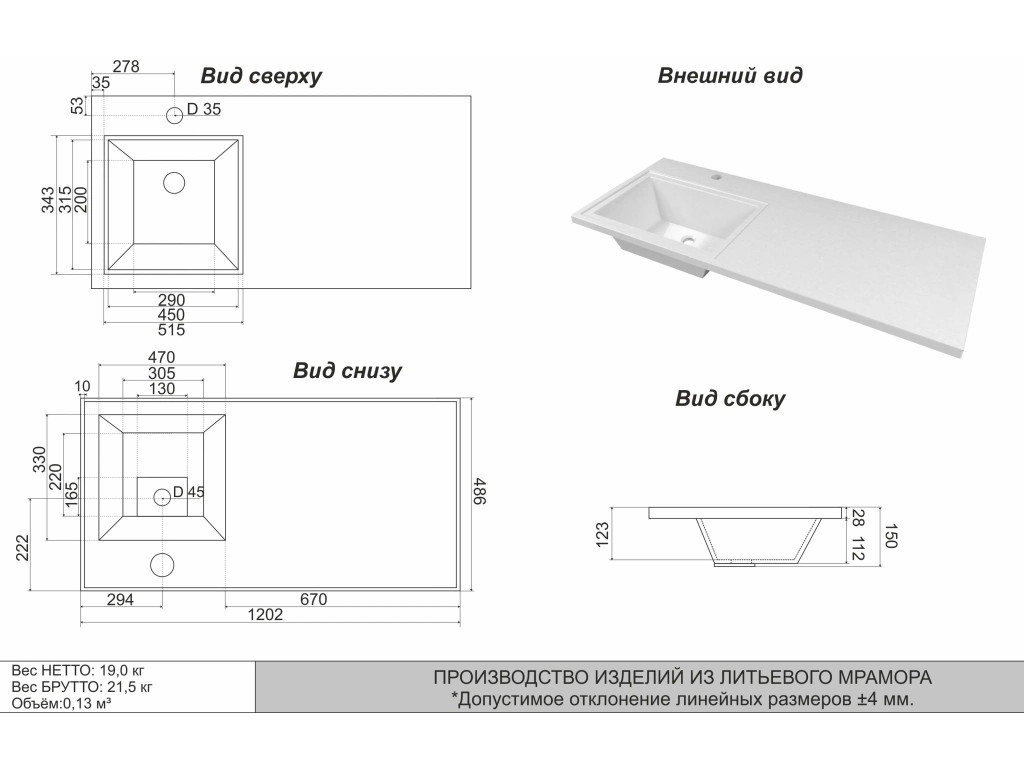 - Раковина над стиральной машиной Uperwood Марсал левая белая