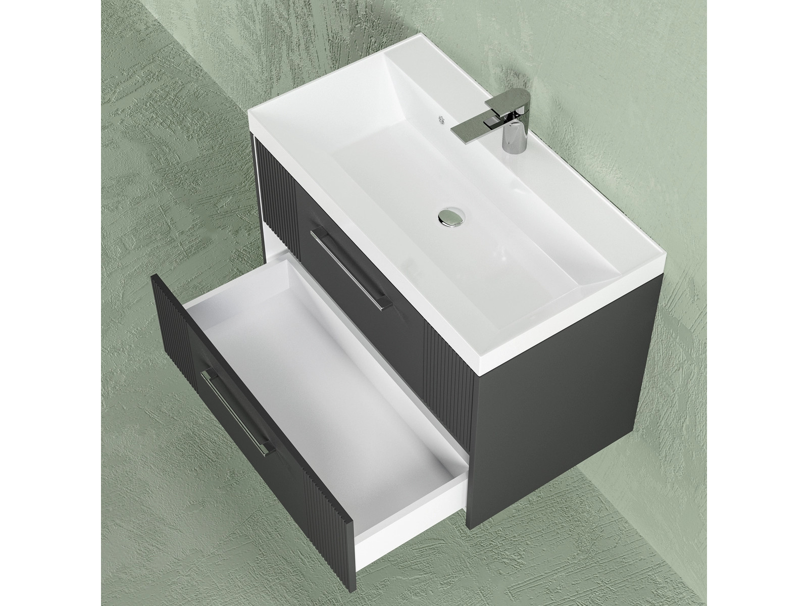 Тумба Альба 80 подвесная 2 ящика раковина Слим 80 антрацит