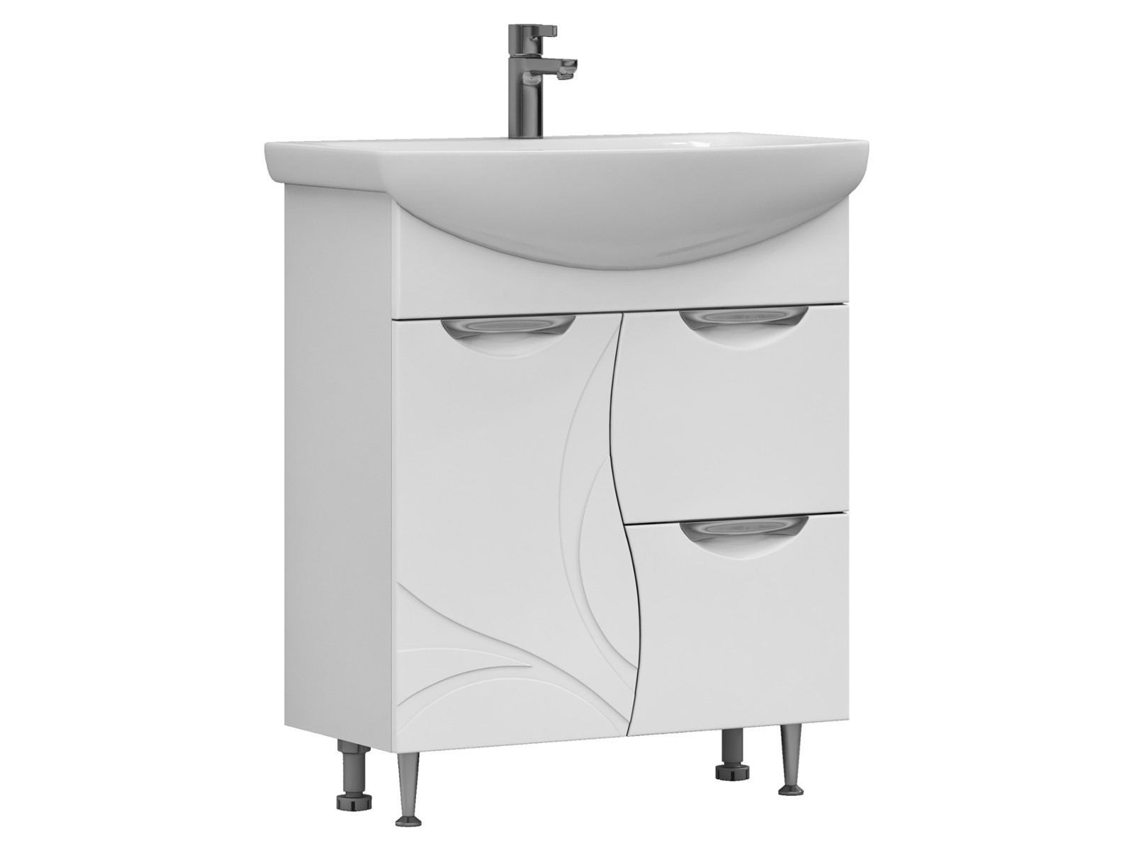 Оснащение: 1 дверца; 2 ящика; 1 полка ЛДСП; ручка металлическая хромированная; опоры конус регулируемые